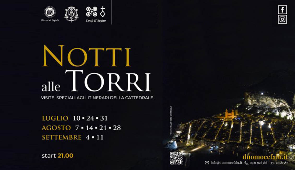 ...Vivi la Magia della Cattedrale di Notte! Le visite alle Torri della Cattedrale di Cefalù non sono mai state così speciali! Tornano ad illuminare l’estate della cittadina normanna, le visite serali ai percorsi della Cattedrale. Un calendario ricco di eventi con ben nove